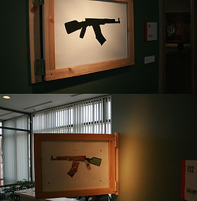 The goal of billboards and advertising in general is to make something appear to be something other than what it is in reality, i.e. to make luxuries appear as necessities. This piece is my attempt to reverse engineer that principle and make a sign that showed what something really was instead of the illusion. The viewer first sees a gas pump and as they walk by the piece the image transforms into a gun. The truth is a gas pump is like a gun both physically and metaphorically. They are instruments at the base level by which power is gained and maintained. Guns can also represent many things such as violence, aggression, and coercion. Lobbyists are most certainly aggressive in the area of our nation’s legislation and policy. Shell oil's dealings in Africa is definitely an example of how violence can be perpetrated by business interests. Showing the gas pump as a gun along with the title "Supply and Demand" illustrates both the complex interactions that occur at the global level in the world of gaining and maintaining access to this resource, but also the lack of choice given to the consumer on whether or not to use this product.